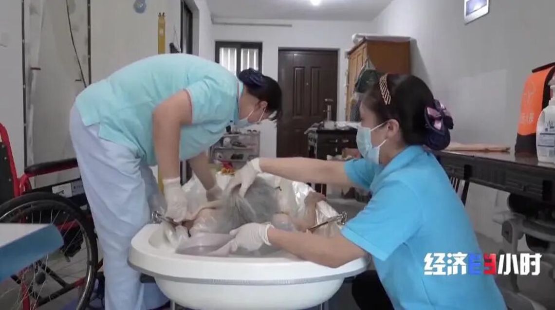 对于85岁的戴莲珠老人来说,上门护理师现在成了一个刚需。像吸痰、更换尿管、膀胱冲洗、翻身、拍背这样的护理,去医院不方便,家里人又没法精准完成,专业人员上门护理就破解了燃眉之急。